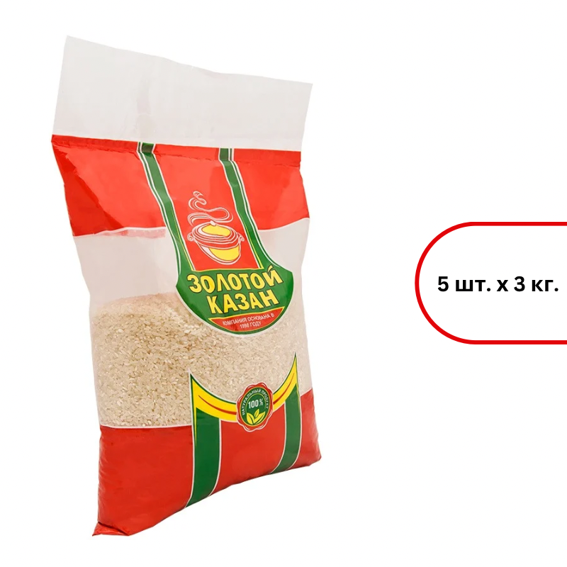 Рис "Золотой Казан" круглозерный, 3кг мягк/уп
