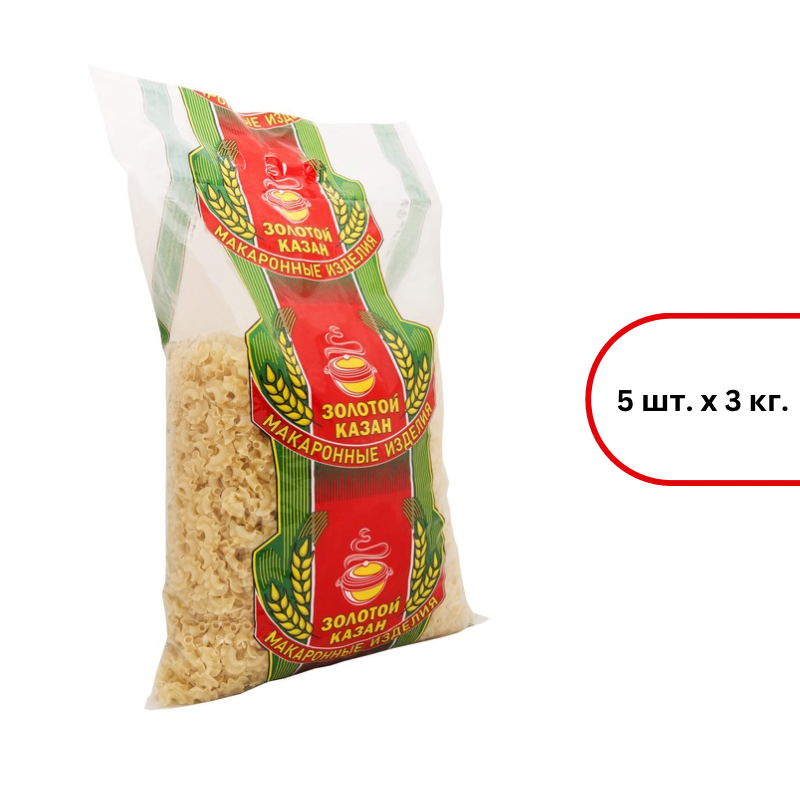 Макароны "Золотой Казан" Гребешок, 3кг мягк/уп