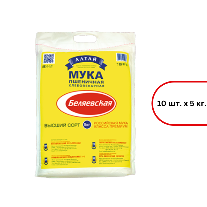 ООО "Элеватор Усть-Калманский"Мука "Беляевская" пшеничная высший сорт 5 кг.